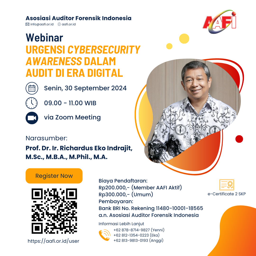 Asosiasi Auditor Forensik Indonesia Tenabaga (AAFI TENABAGA) mengundang Bapak/Ibu dalam Webinar Online dengan Tema: Urgensi Cybersecurity Awareness dalam Audit di Era Digital